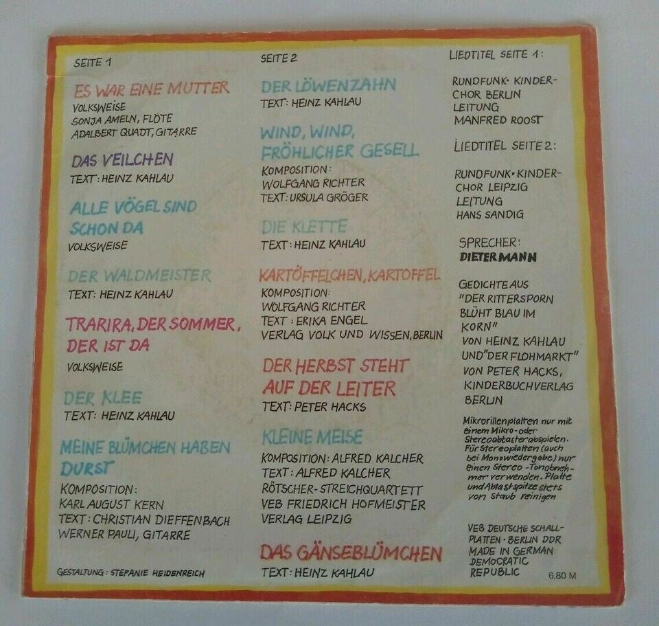 Rundfunk-Kinderchor Berlin / Rundfunk-Kinderchor Leipzig – Es War Eine Mutter, Die Hatte Vier Kinder Litera 5 65 111