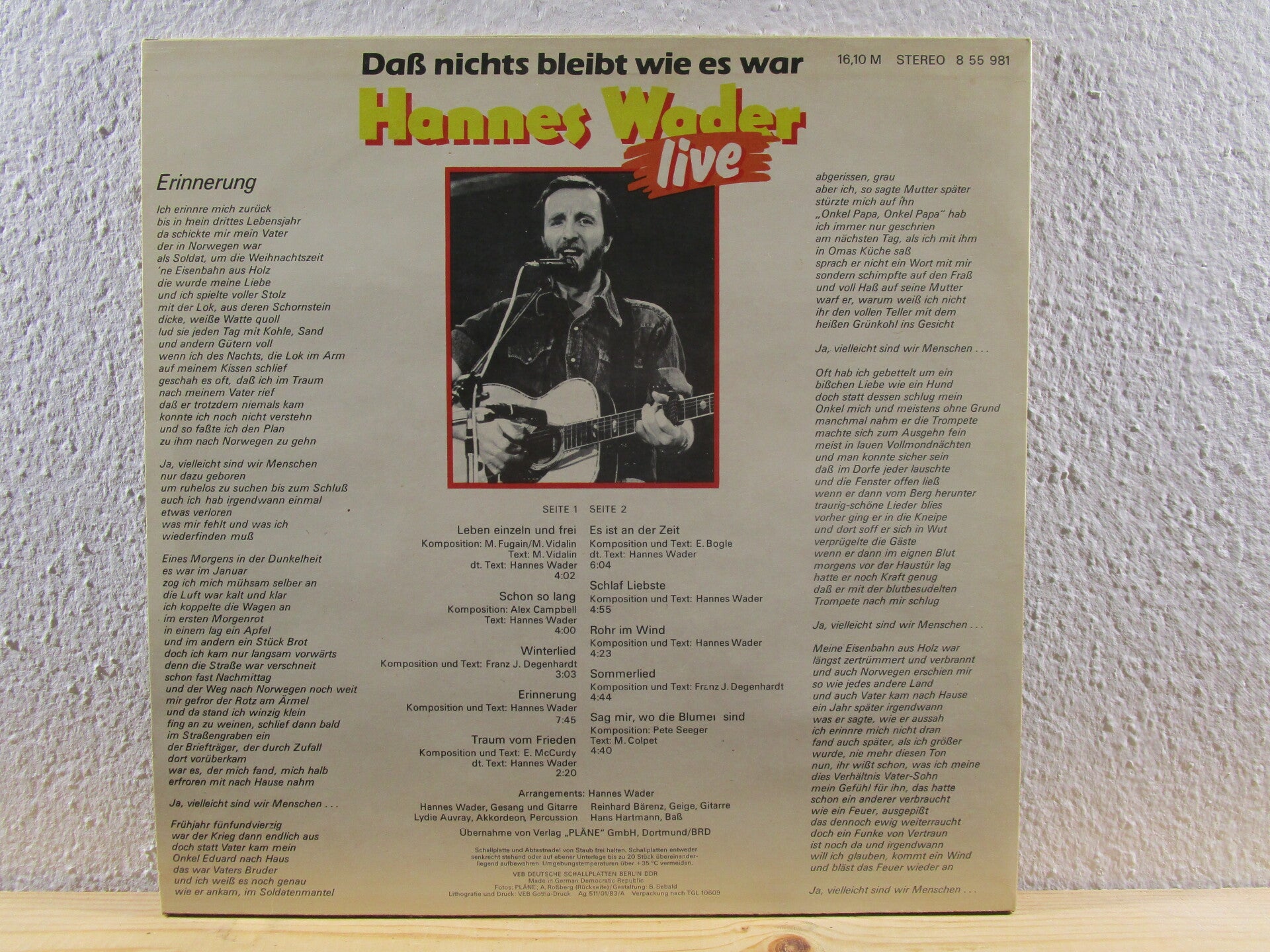 Hannes Wader - Daß nichts bleibt wie es war - Live Amiga 8 55 981